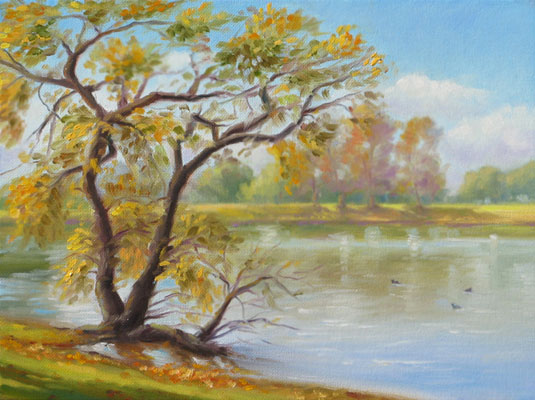 Park Lake 9" x 12 " Oil on Canvas Panel