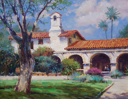California Mission 18"x14" Oil on Panel