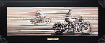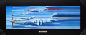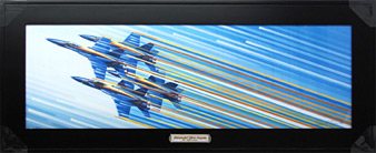 12" x 36" satin black frame, glass face, title emblem mounted on frame. Signed and numbered on print, limited production of 75 each, includes certificate of authenticity. $250.00 ea. |