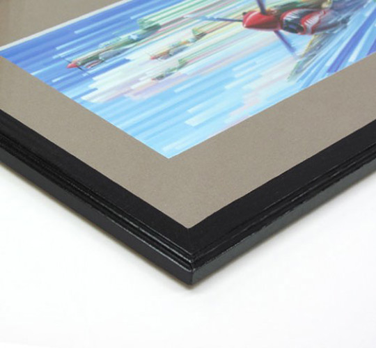 7.5" x 14" x 3/8" hardwood frame, black finish, glass face - $12.00 ea.