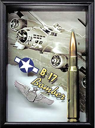 Authentic .50 cal. shell, pilot wings, Can be hung or displayed on shelf.