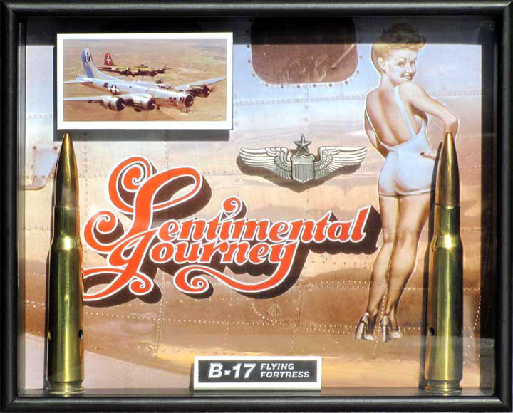 8" x 10" x 1.75" deep. Authentic .50 cal. bullets, raised pilot wings & aircraft image,