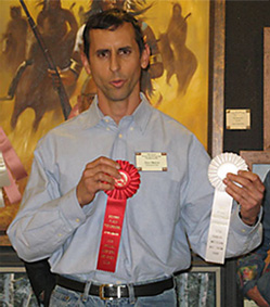Dave Medore holding ribbons.